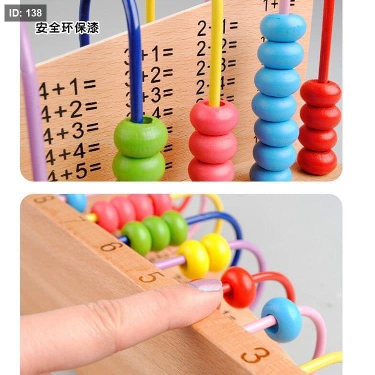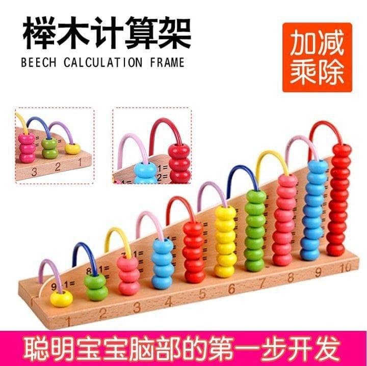 لعبة خشبية تفاعلية تساعد الطفل على فهم أساسيات الرياضيات من خلال العد البصري والمطابقة العملية. كل عمود يمثل عملية حسابية، والخرزات الملونة تسهّل على الطفل رؤية النتيجة وتكوينها بنفسه.