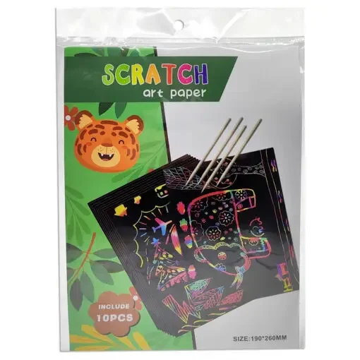 اختبر متعة الإبداع مع هذا الورق الأسود المميز! عندما يرسم طفلك بالأداة المرفقة (قلم خشبي)، تظهر الألوان بشكل مبهر وسحري على الورق، لتتحول كل رسمة إلى عمل فني مشرق وجذاب. تجربة ممتعة لتطوير مهارات الرسم والإبداع بطريقة ممتعة وفريدة