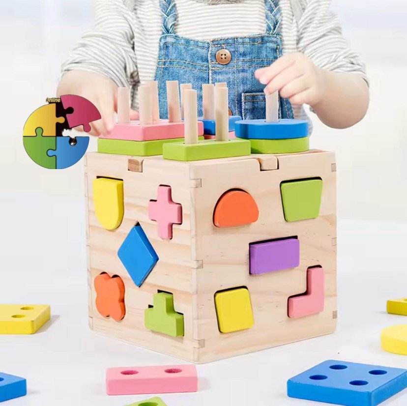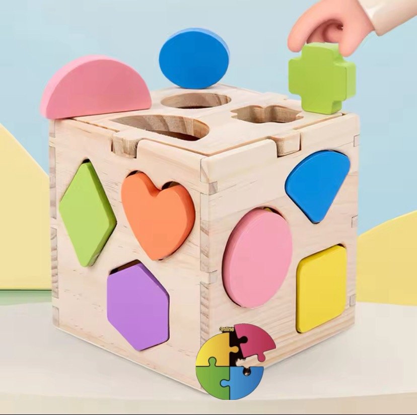 مكعب تطابق الأشكال الهندسية الخشبي