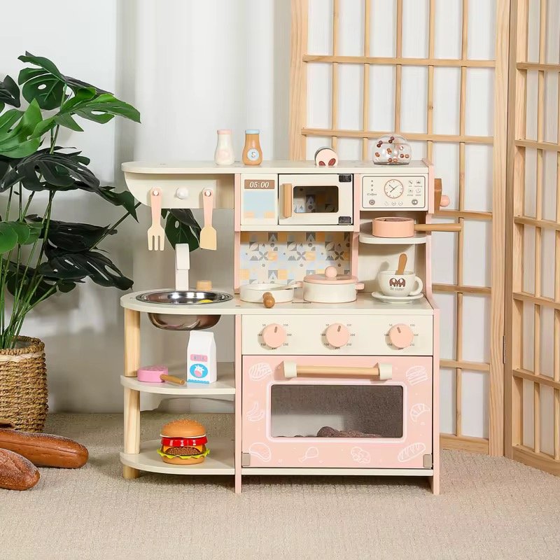 خلي طفلتك تعيش أجواء الطبخ والتخيل مع Wooden Kitchen Toy 🌈