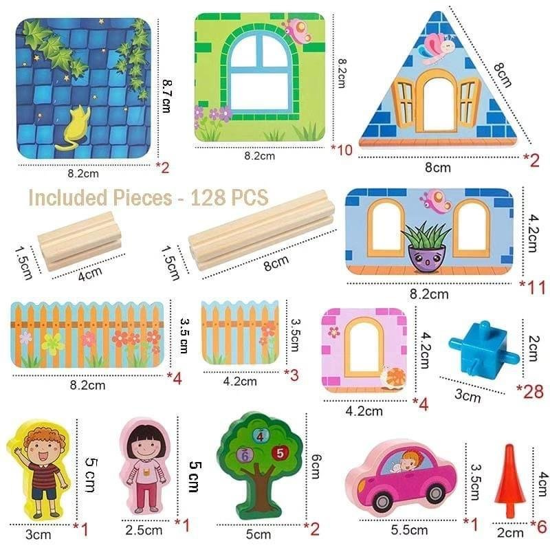 مجموعة تعليمية خشبية تحتوي على قطع هندسية ثلاثية الأبعاد بألوان زاهية، تُستخدم لتركيبها داخل فتحات مطابقة على صندوق خشبي أو على ألواح مسطحة مرفقة. الطفل يتفاعل مع كل قطعة من خلال الإمساك، التوجيه، والتركيب، مما يعزز مهاراته الحركية والبصرية بطريقة ممتعة وآمنة.