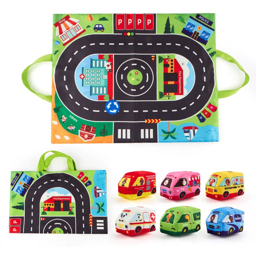 مجموعة تفاعلية بتضم سيارات وأشكال طرق ومبانٍ بتخلي الطفل يعيش تجربة قيادة وتشغيل حقيقية 👶🛻