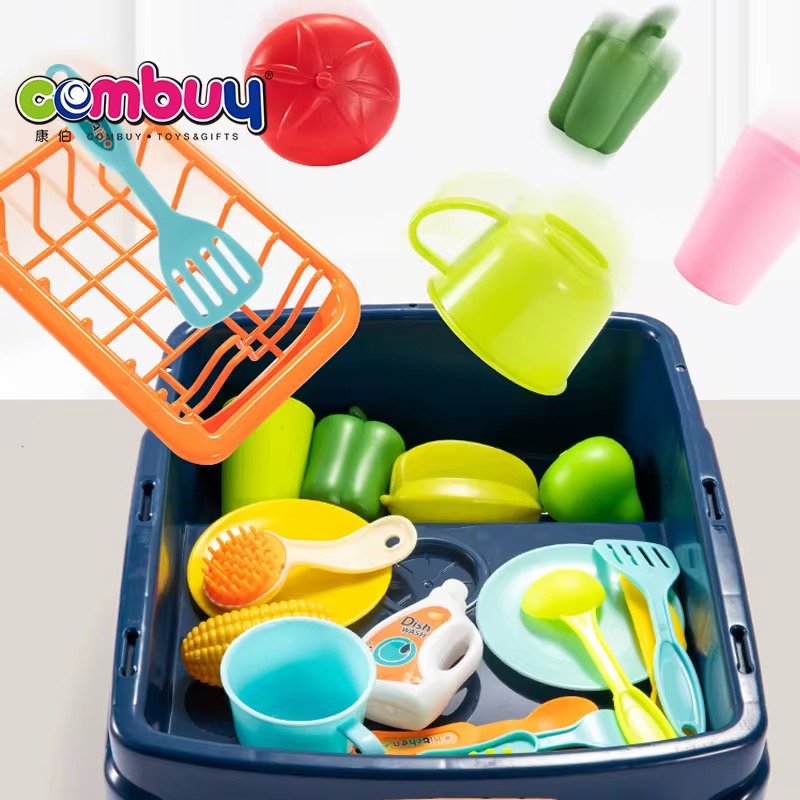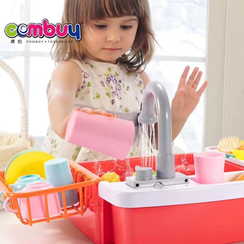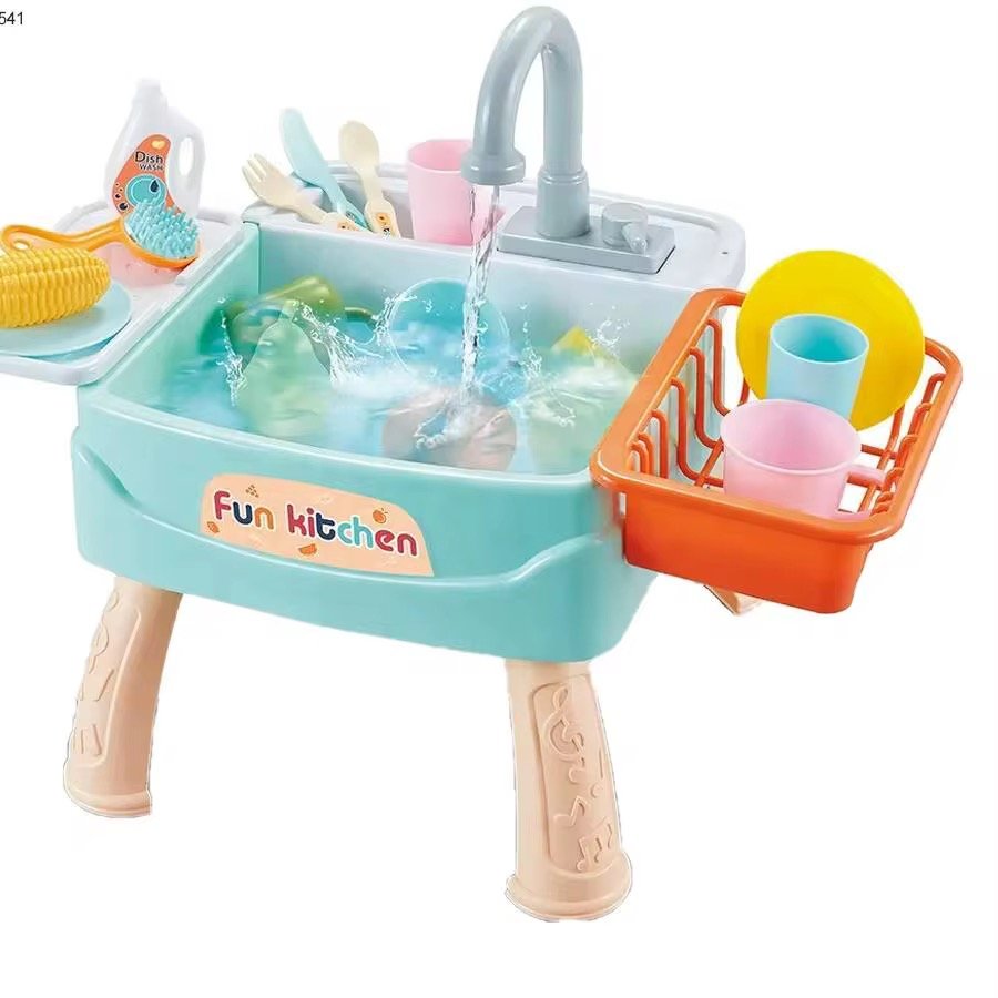 الحوض مزود بماء بلاستيكي آمن وقطع صغيرة لتعلم التنظيف والاعتناء بالأدوات 🧼