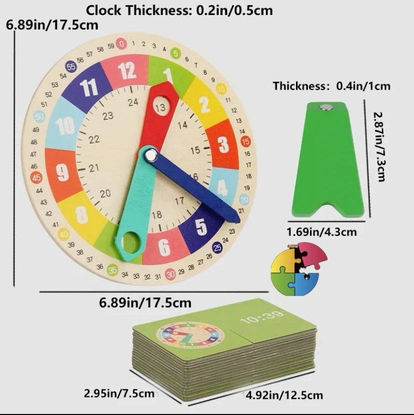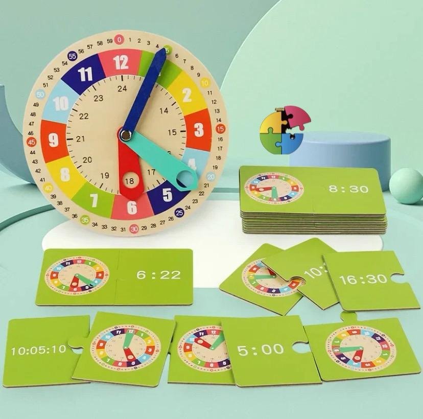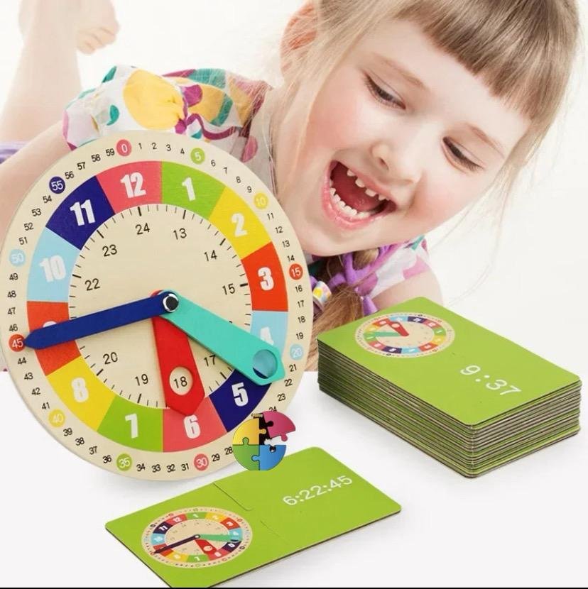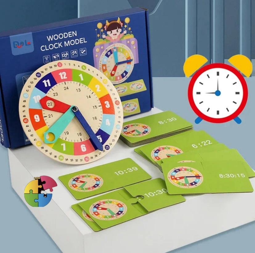 لعبة تفاعلية تُعلّم الطفل قراءة الوقت بطريقة ممتعة. تشمل ساعة بعقارب متحركة وبطاقات مطابقة بين الساعة الرقمية والتناظرية، لتعزيز الفهم البصري والمنطقي.