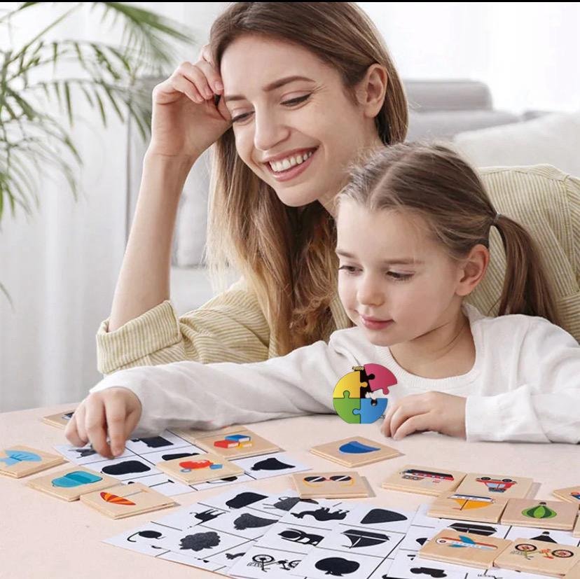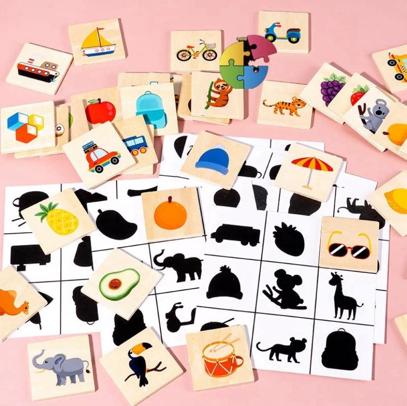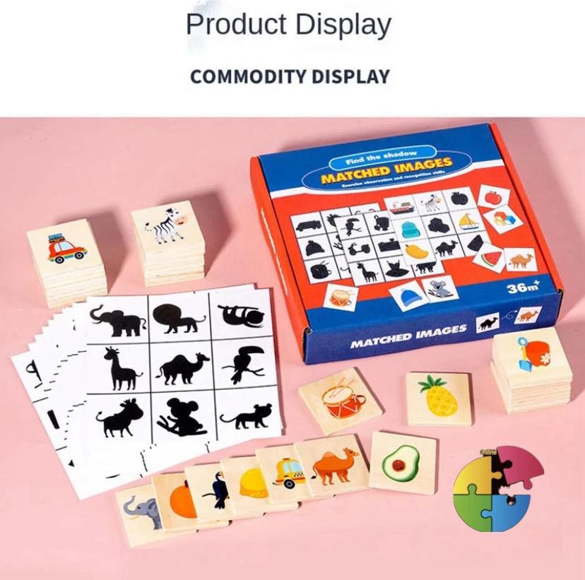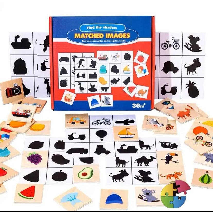 لعبة تعليمية ممتعة تُساعد الطفل على تطوير مهارات التركيز والتمييز البصري من خلال مطابقة الصور الملونة مع ظلّها الصحيح. تحتوي على بطاقات ظلال خشبية وصور لأشياء مألوفة مثل الحيوانات والفواكه والمركبات، مما يجعل التعلم قريبًا من عالم الطفل اليومي.