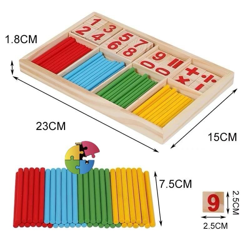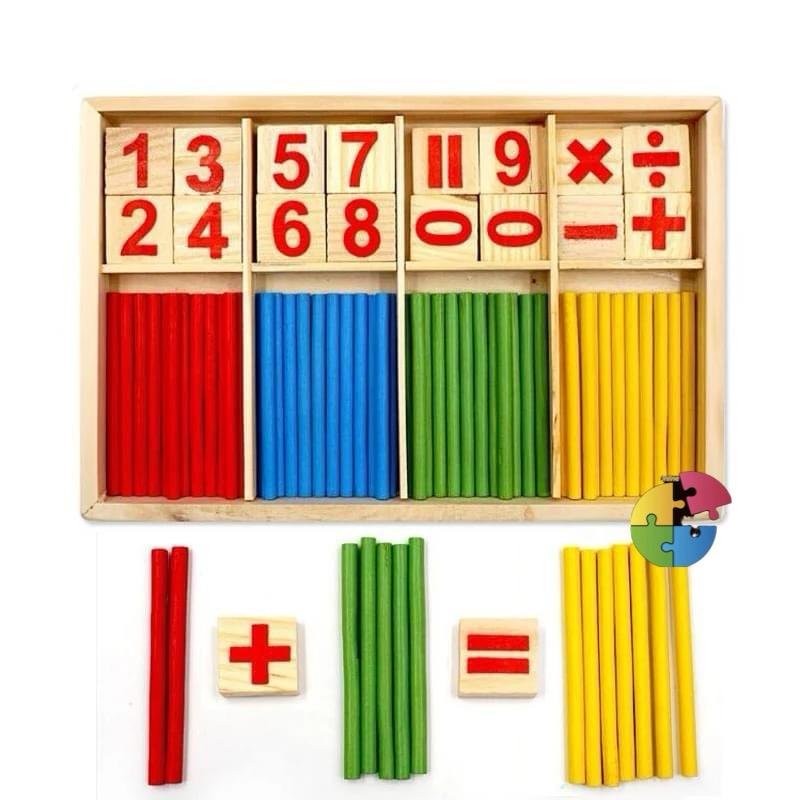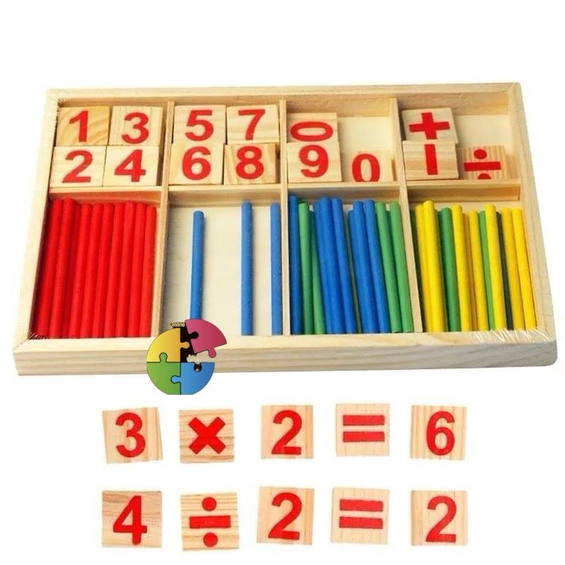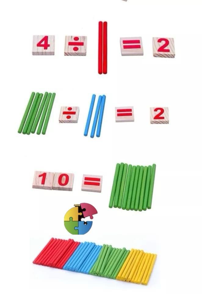 لعبة تعليمية خشبية تُساعد الطفل على تعلّم العمليات الحسابية الأساسية من خلال العصي الملونة والبلاطات الرقمية. يُمكن للطفل تكوين معادلات مثل الجمع والطرح باستخدام الأرقام والرموز، مع دعم بصري من العصي لتوضيح المفهوم بطريقة ملموسة.