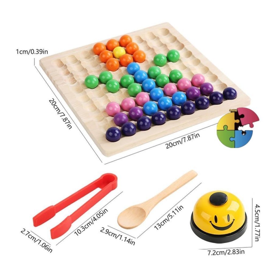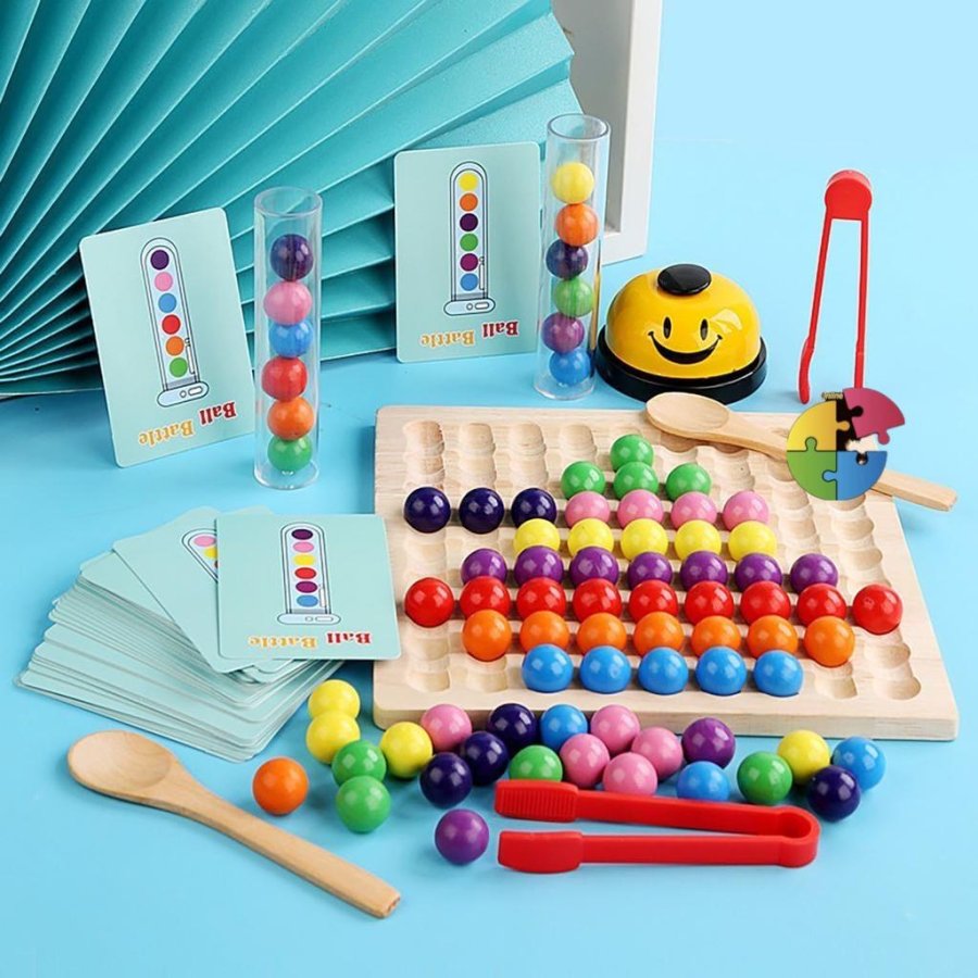 لعبة تعليمية تفاعلية مناسبة لعمر 3 سنوات فما فوق، تُشجّع الطفل على تنمية المهارات الحركية الدقيقة من خلال التقاط الكرات الملونة باستخدام الملقط، ومطابقتها مع البطاقات النمطية. تحتوي على لوحة خشبية، كرات بألوان زاهية، بطاقات تحدي، أنبوبين شفافين، وجرس صغير يُضيف عنصر الحماس والتنافس.