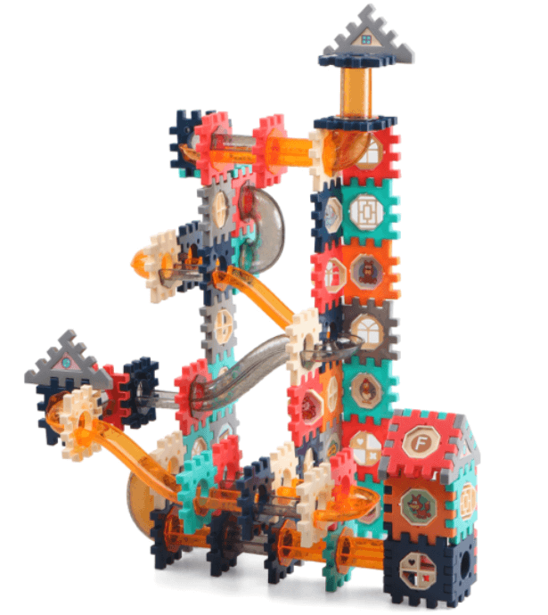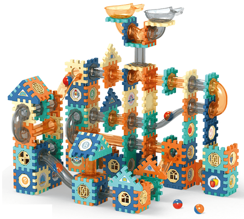خلي طفلك يبدع في بناء المسار، ويشوف الكرات وهي تنطلق بسرعة بين المنحنيات والأنفاق 🎈