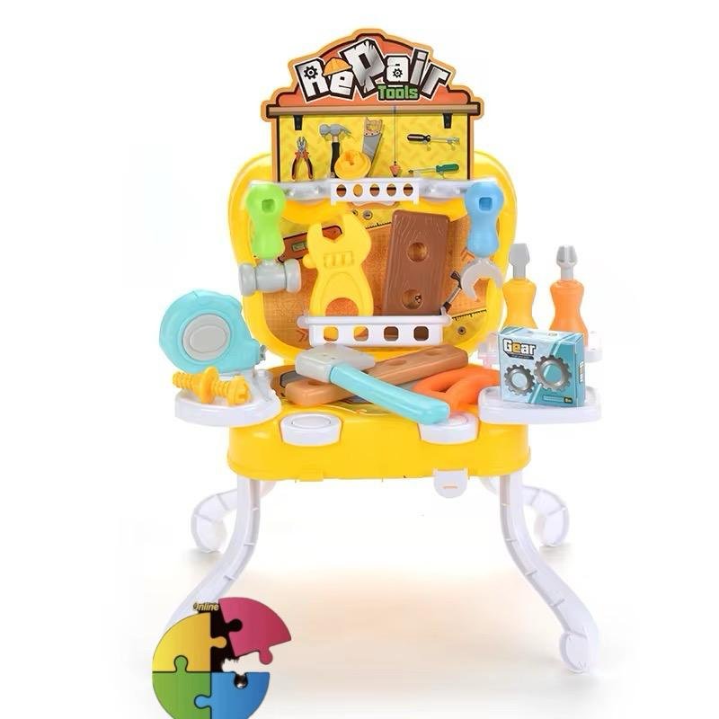- 🔧 طاولة الورشة: مفك، مطرقة، منشار وأدوات تصليح لتنمية التفكير العملي وحل المشكلات.