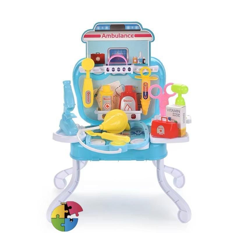- 🚑 طاولة الإسعاف: سماعة طبيب، حقنة، أدوات فحص، وسجل طبي لتعلّم العناية بالآخرين.