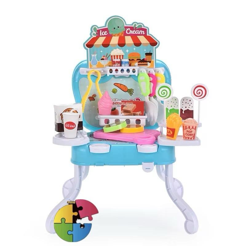 - 🍔 طاولة الطباخ الصغير: أدوات مطبخ، قائمة طعام، وأطعمة بلاستيكية لتحضير ألذ الوجبات.