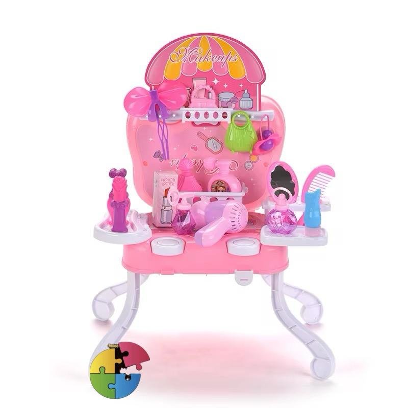 - 💄 طاولة صالون الجمال: مجفف شعر، مرآة، مكياج وأدوات تصفيف لتشجيع التعبير الذاتي.