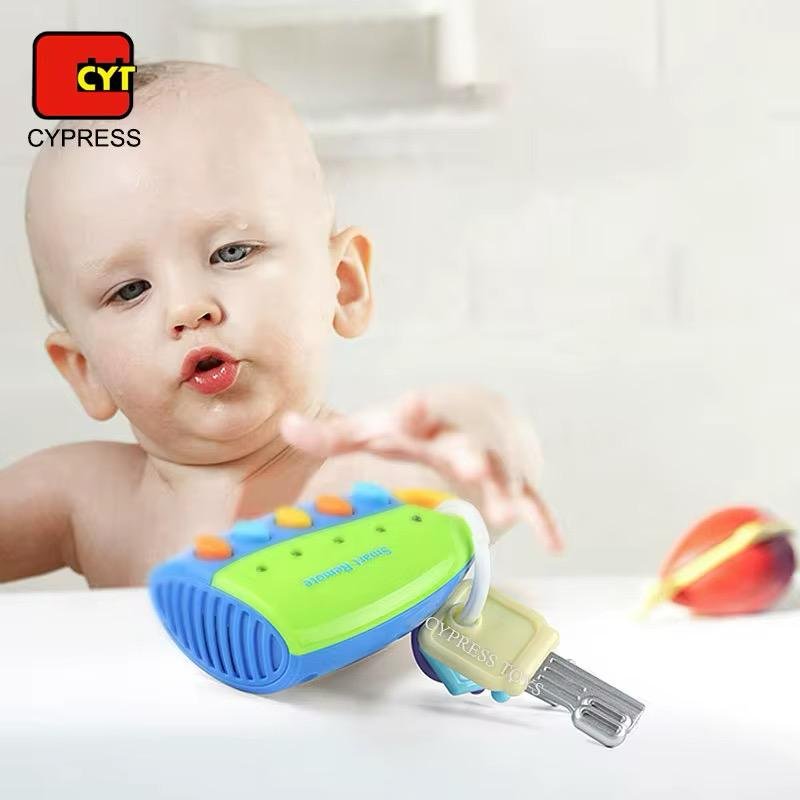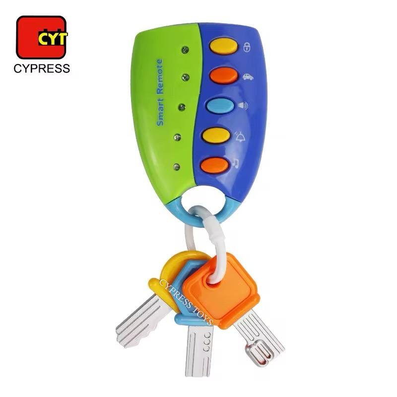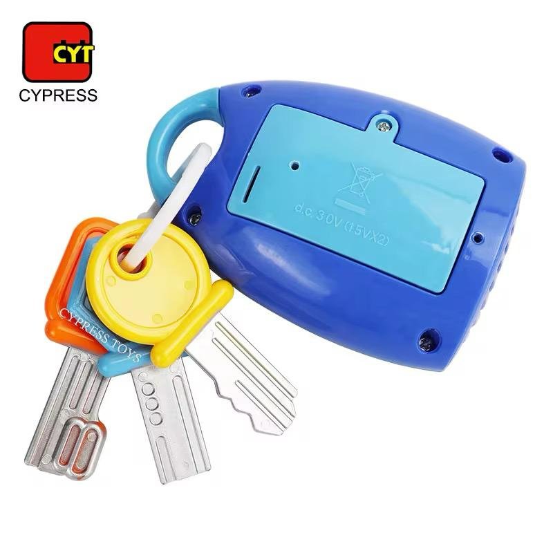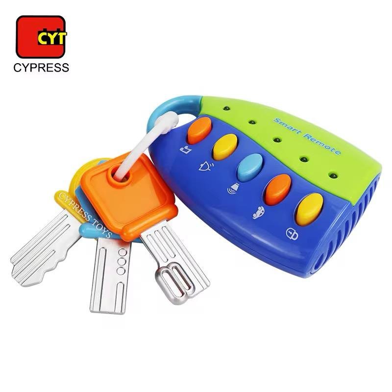 لعبة مفاتيح مصممة خصيصًا للأطفال الصغار، تجمع بين المرح والتعلم في تصميم يحاكي المفاتيح الحقيقية. تحتوي على جهاز تحكم بلاستيكي بأزرار ملونة (أخضر، أزرق، برتقالي، أصفر)، تحمل رموزًا مثل النغمة الموسيقية، السيارة، والمصباح، بالإضافة إلى ثلاثة مفاتيح بلاستيكية بألوان زاهية ونهايات معدنية الشكل.