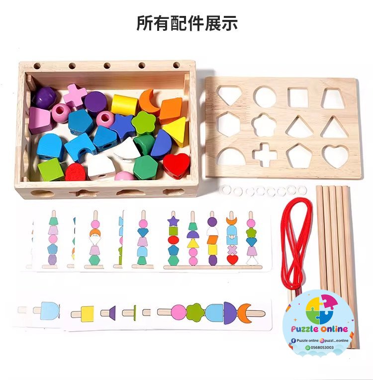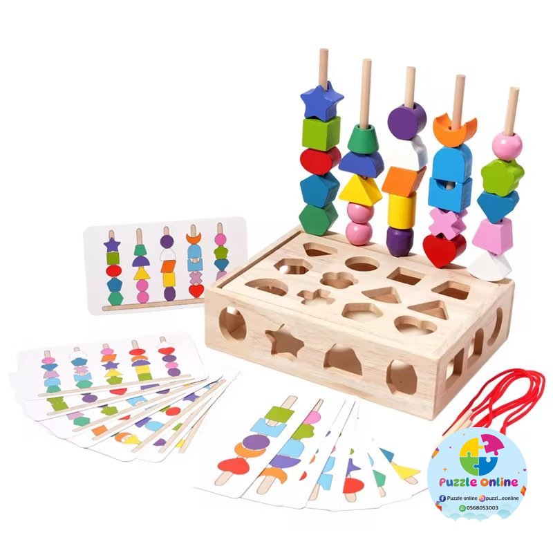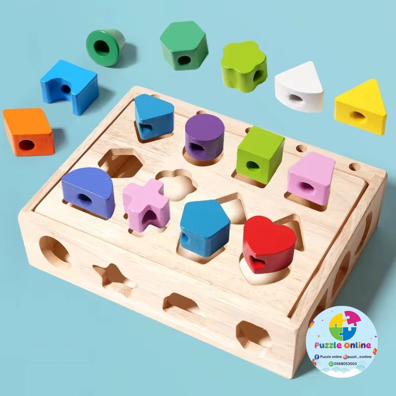 🔸 صندوق تطابق الأشكال مع أعمدة خشبية وأشكال ملونة