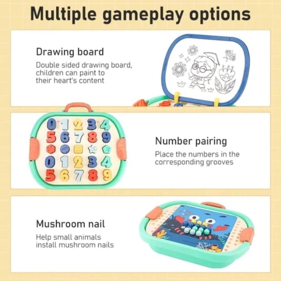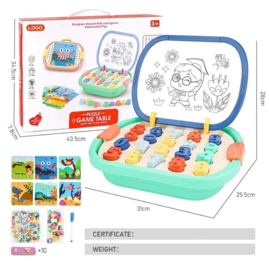 هذه اللعبة الذكية تأتي على شكل حقيبة محمولة تفتح لتكشف عن عالم من الأنشطة التفاعلية التي تجمع بين اللعب، الفن، والتعلم المبكر.