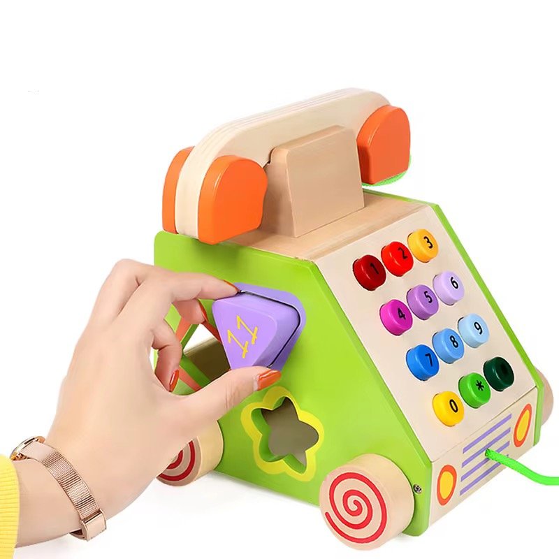 هاتف خشبي ممتع للأطفال، يجمع بين اللعب والتعلم في وقت واحد! يحتوي على لعبة تطابق الأشكال الهندسية لتطوير المهارات الحركية الدقيقة، تعزيز التفكير المنطقي، وتنمية مهارات التنسيق بين اليد والعين بطريقة ممتعة وآمنة.