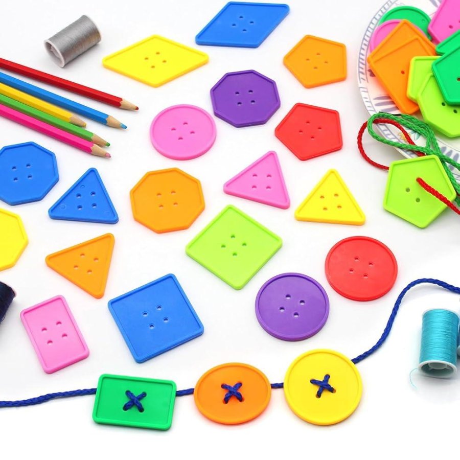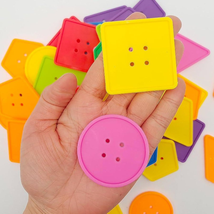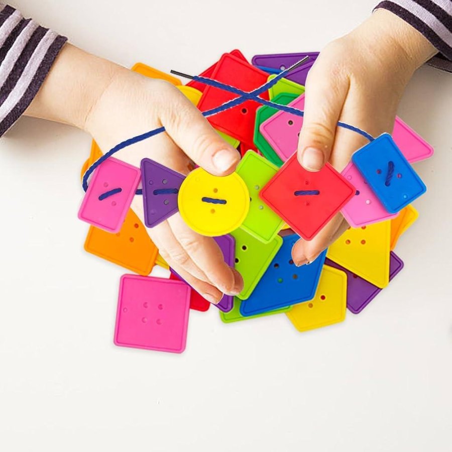 هاي المجموعة بتحتوي على أشكال ملونة بأحجام متنوعة ، وكل شكل فيه فتحات مصممة خصيصًا لتمرير الخيط، مما يساعد الأطفال على تطوير مهاراتهم الحركية الدقيقة، والتنسيق بين العين واليد، والتعرف على الألوان والأشكال بطريقة ملموسة.