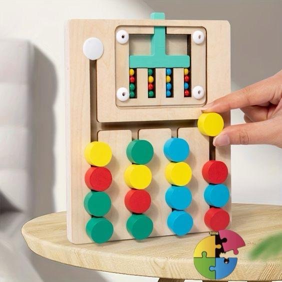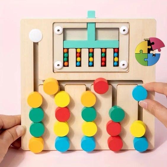 تعتمد على مطابقة الألوان وتحريك القطع لتطوير مهارات اليد والعين وتحفيز الذكاء البصري 👀✨