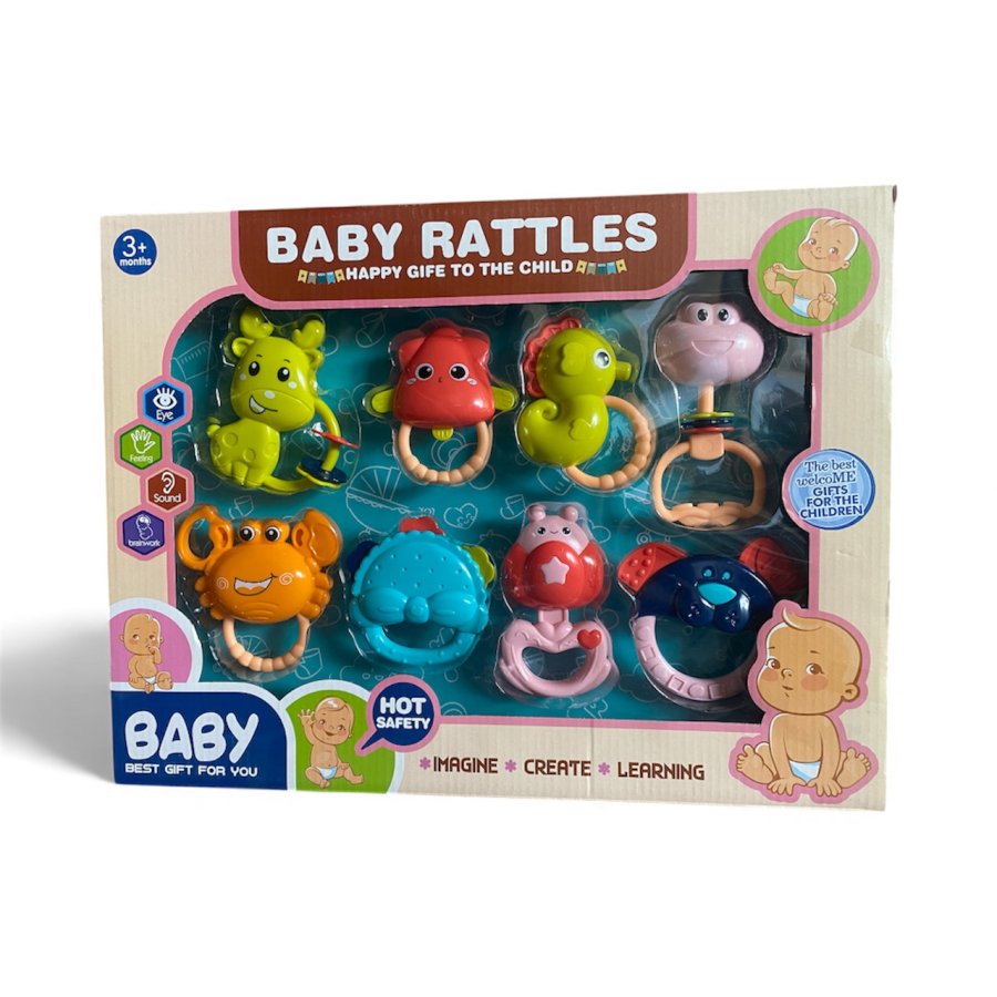 مجموعة مميزة من الخراخيش بألوان زاهية وأشكال متنوعة تجذب انتباه الطفل وتساعده على تطوير حواسه 👶🎶