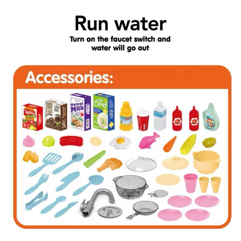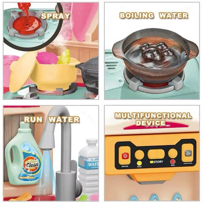 تحتوي على مؤثرات واقعية مثل البخار، الصوت، الضوء، وغليان الماء، بالإضافة إلى أدوات مطبخ متنوعة مثل القدور، الملاعق، والأطعمة البلاستيكية.