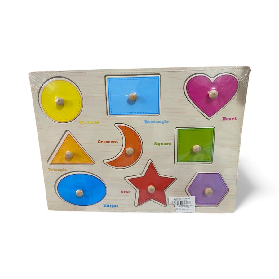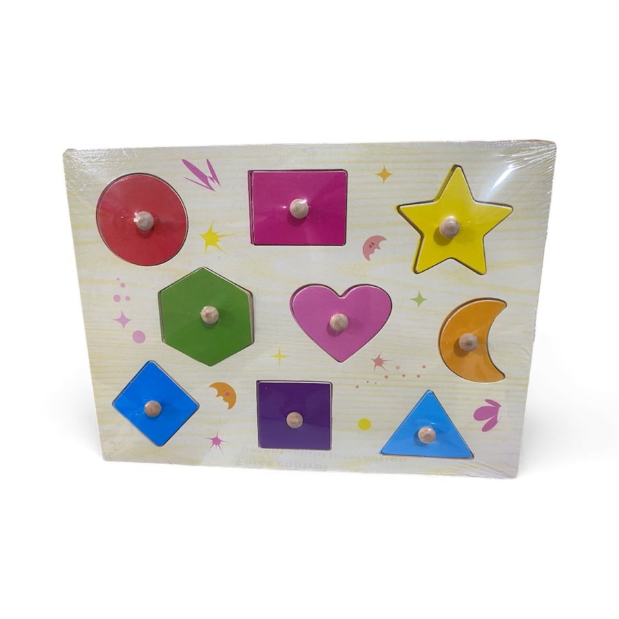 اللوح يحتوي على أشكال مختلفة للأطفال ليتعرفوا عليها ويضعوها في المكان الصحيح، مما يزيد من مهارات التركيب والتفكير المنطقي