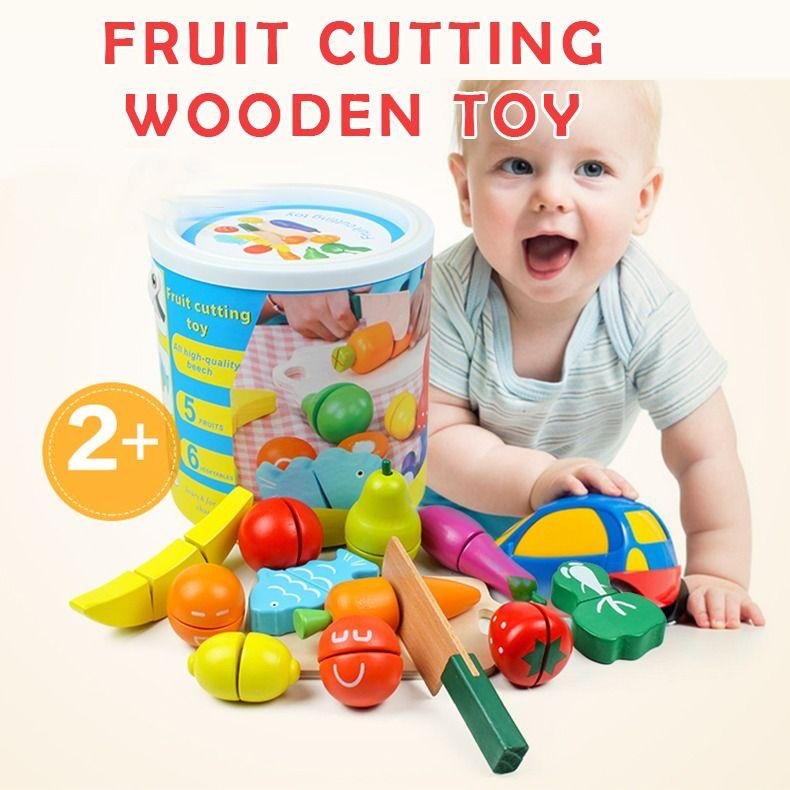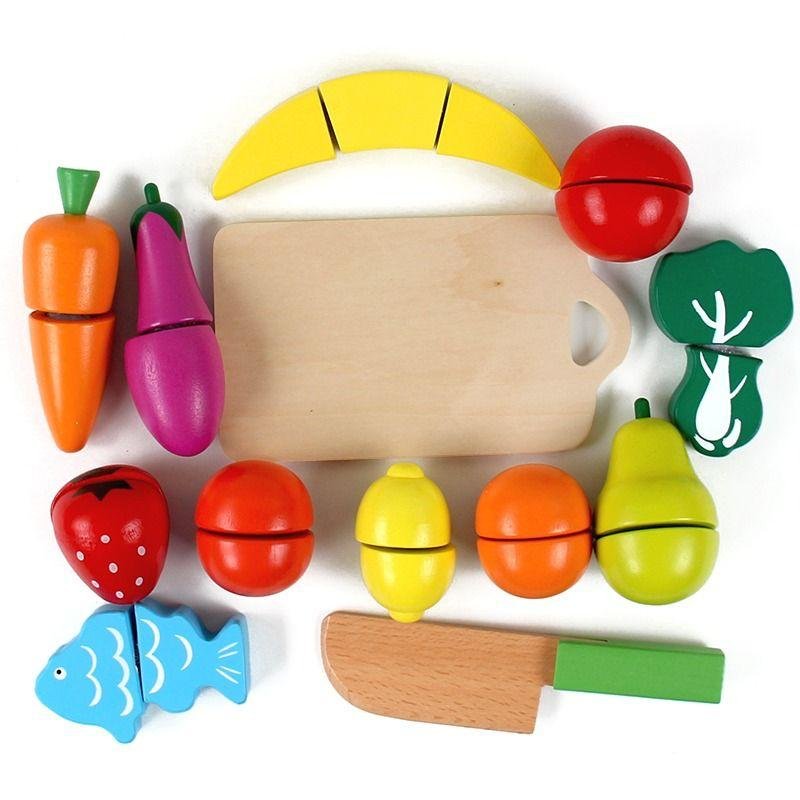 مجموعة ممتعة مصنوعة من خشب عالي الجودة، تضم فواكه وأدوات، مصممة لتشجيع الأطفال على اللعب التخيّلي وتطوير مهاراتهم الحركية الدقيقة بطريقة آمنة ومسلية.