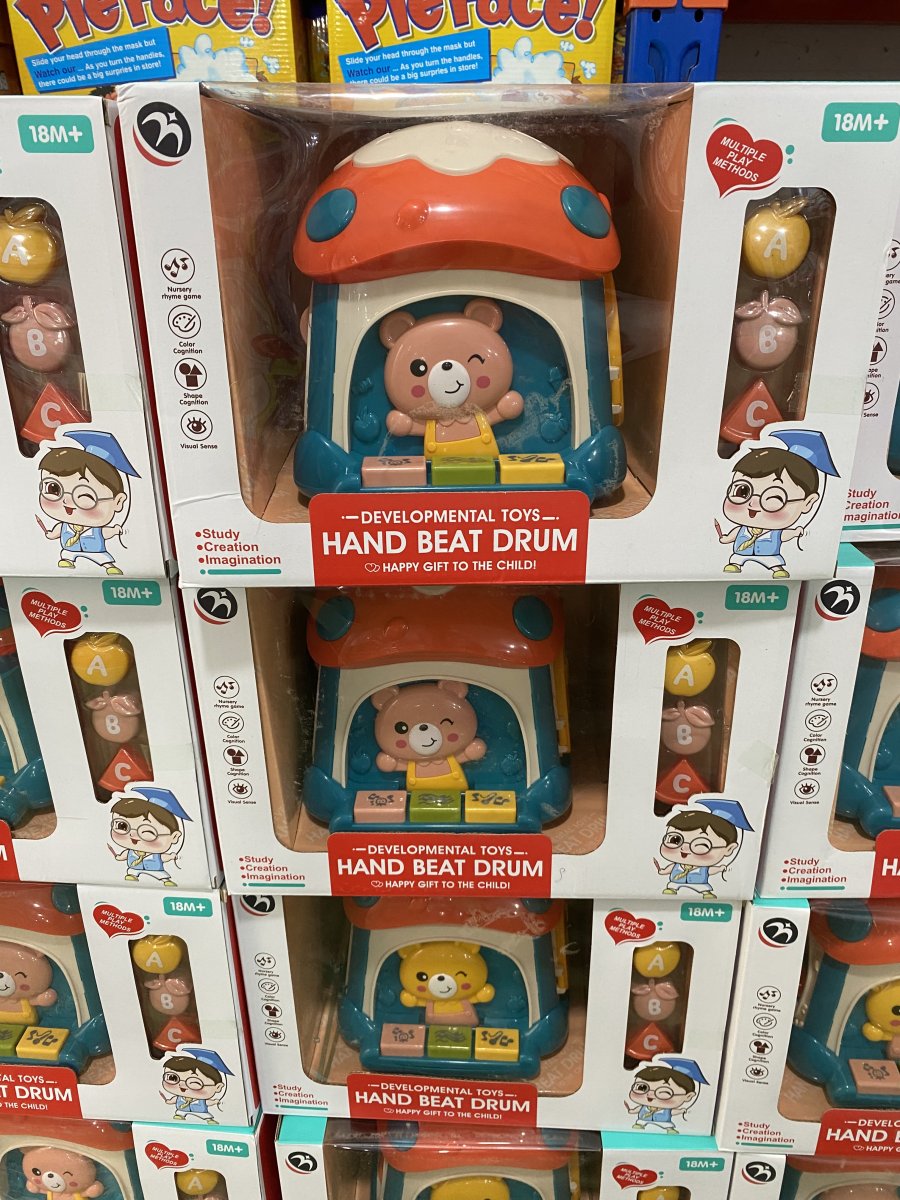 خلّي طفلك يستمتع وبتعلم بنفس الوقت مع لعبة طبل اليد التعليمية المناسبة من عمر 18 شهر وأكثر.