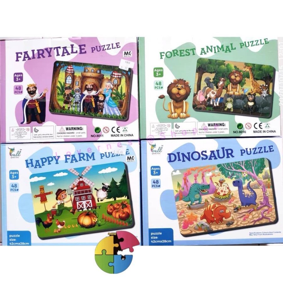 امنحي طفلك فرصة لاكتشاف عوالم مختلفة من خلال أربع بازلات مليئة بالألوان والتفاصيل، مصممة خصيصًا للأطفال من عمر 3 سنوات وأكثر. كل بازل يحتوي على 48 قطعة بقياس 42 × 28 سم، مثالية لتطوير التركيز والمهارات الحركية الدقيقة.