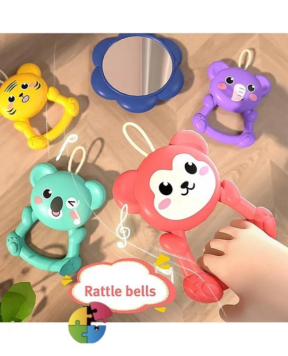 🧸 لُعَب معلّقة ومرآة لتحفيز الطفل خلال وقت الاستلقاء واللعب