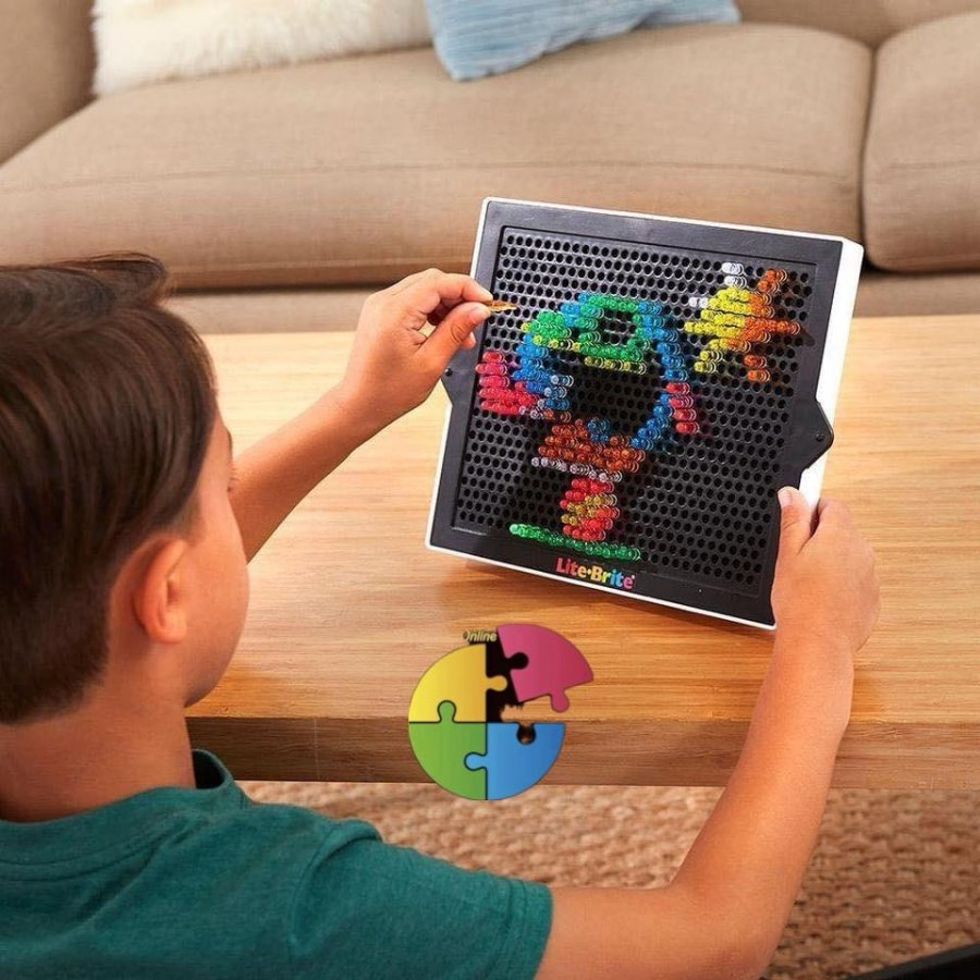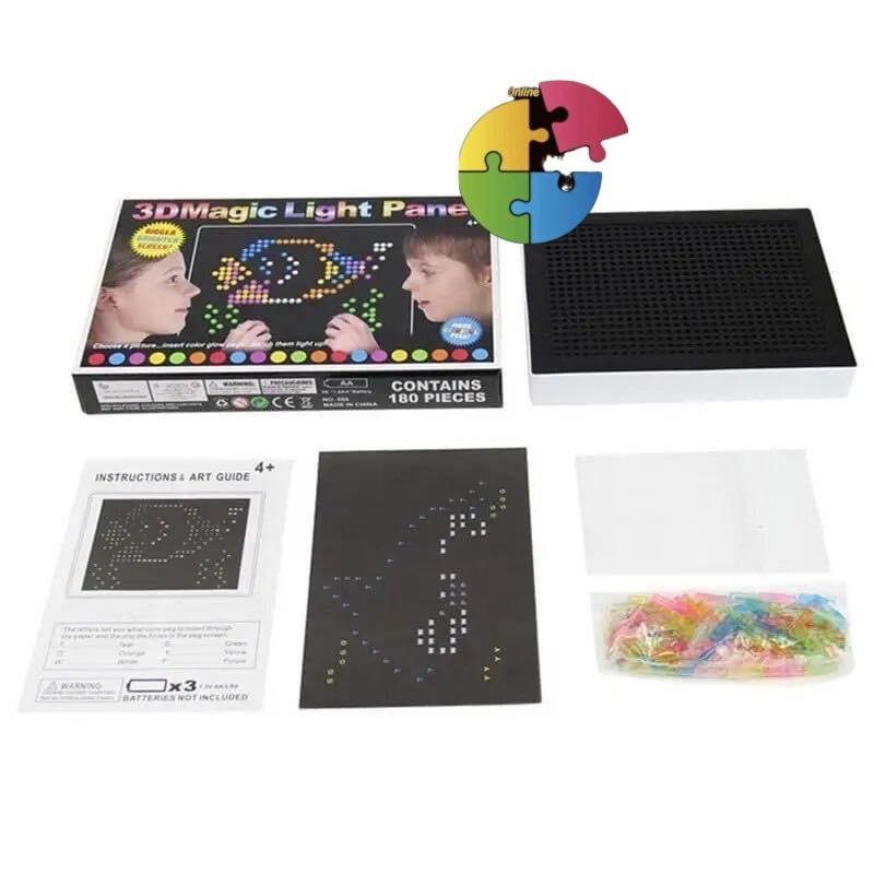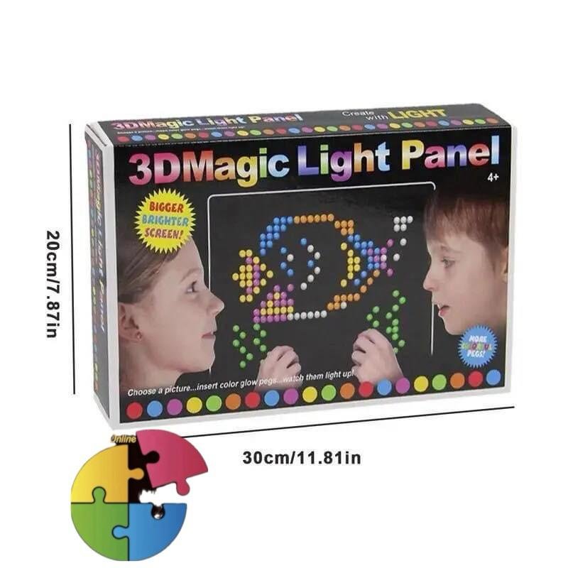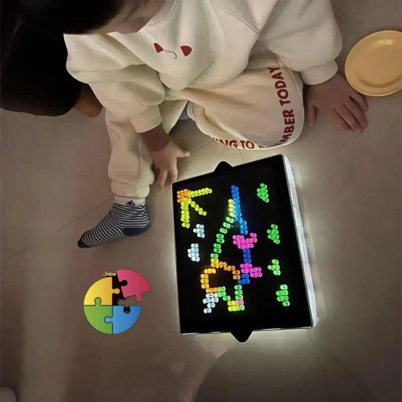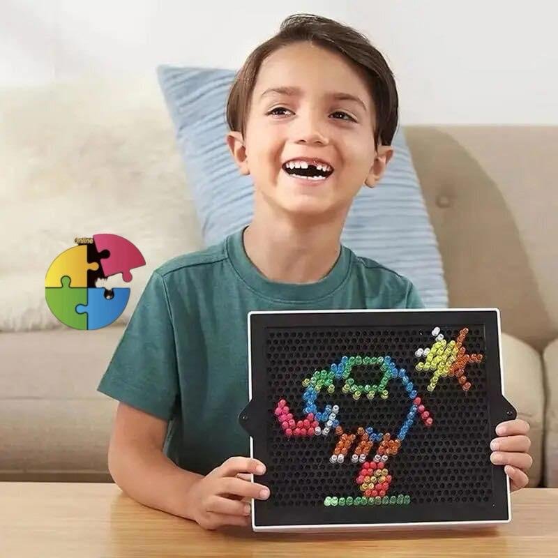 🟢لوحة تفاعلية تسمح للأطفال بإنشاء صور متوهّجة باستخدام أوتاد ملونة تُغرس في الشاشة، لتتحول إلى رسومات مضيئة تنبض بالحياة.