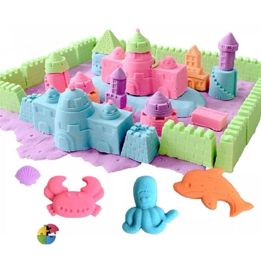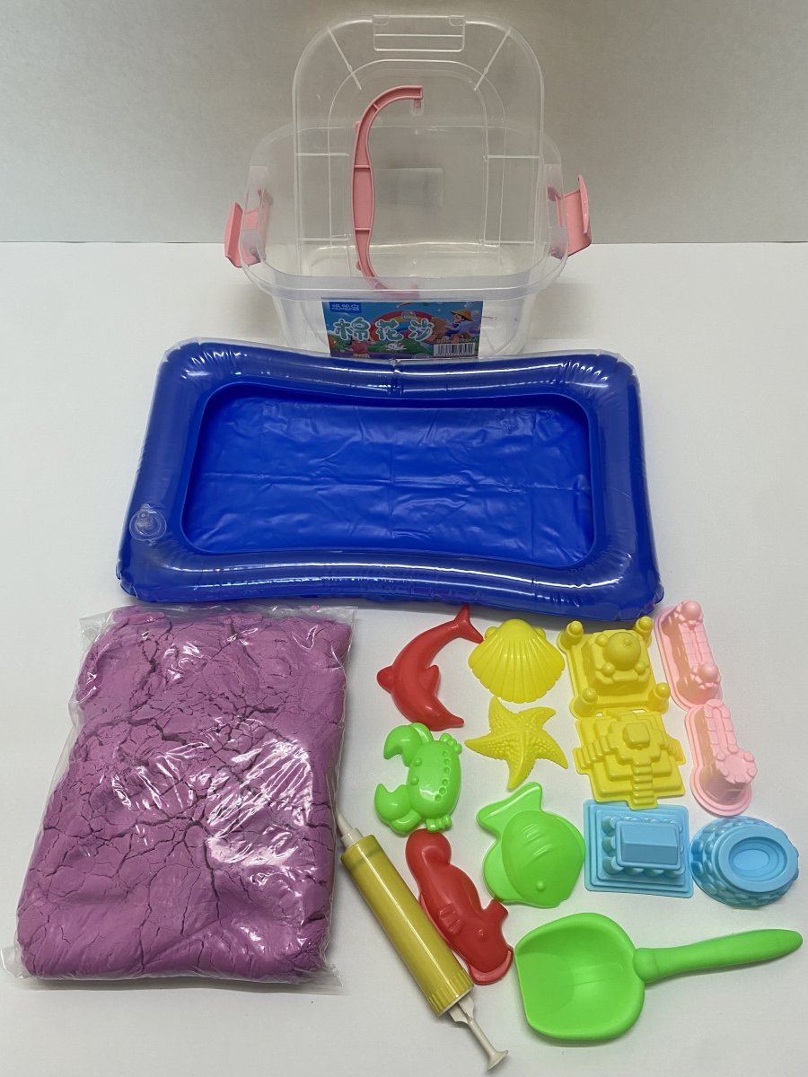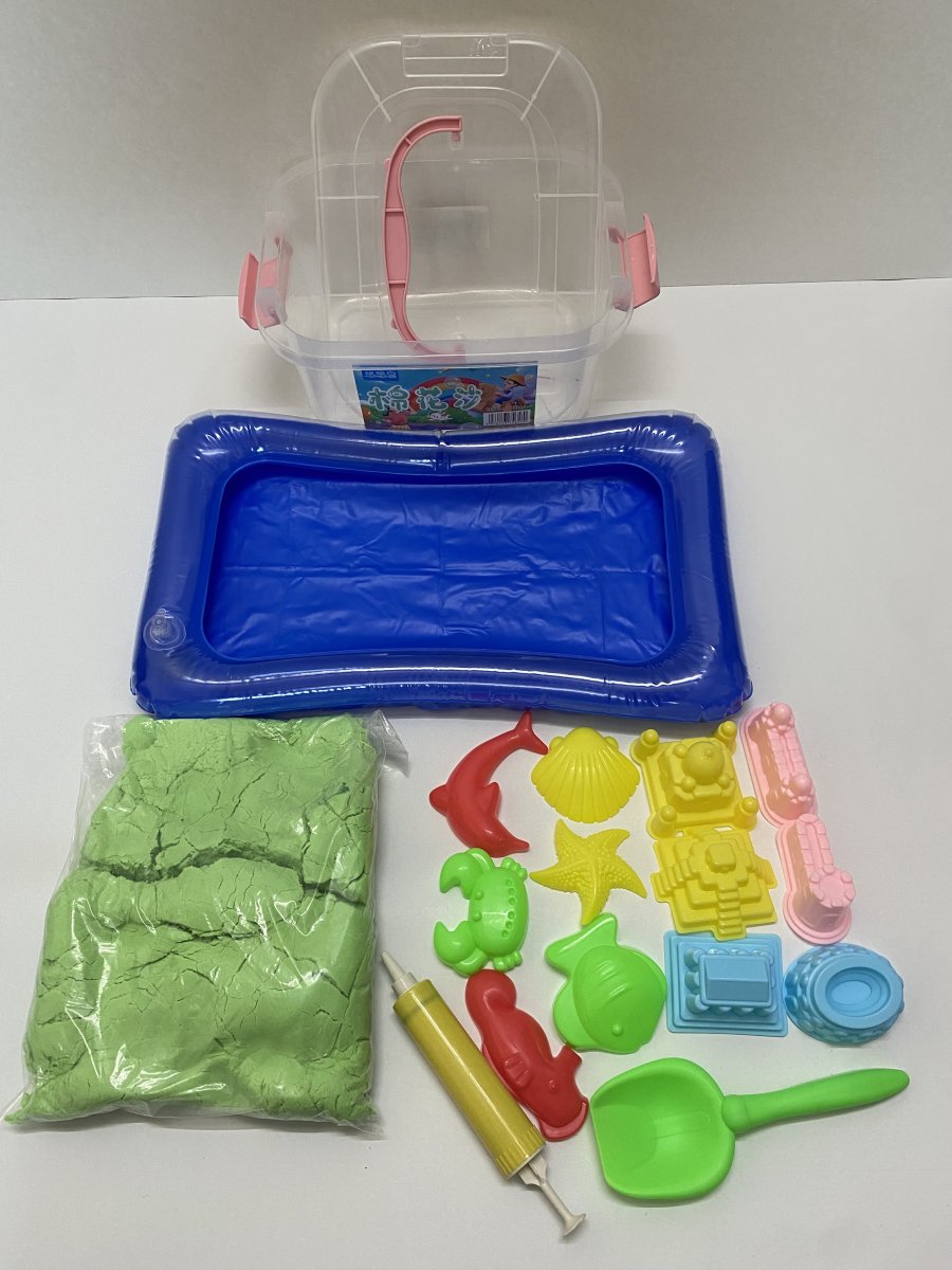 تحتوي على 2 كيلو رمل مع فرشة مع 12 قالب مع مجرفة مع منفاخ