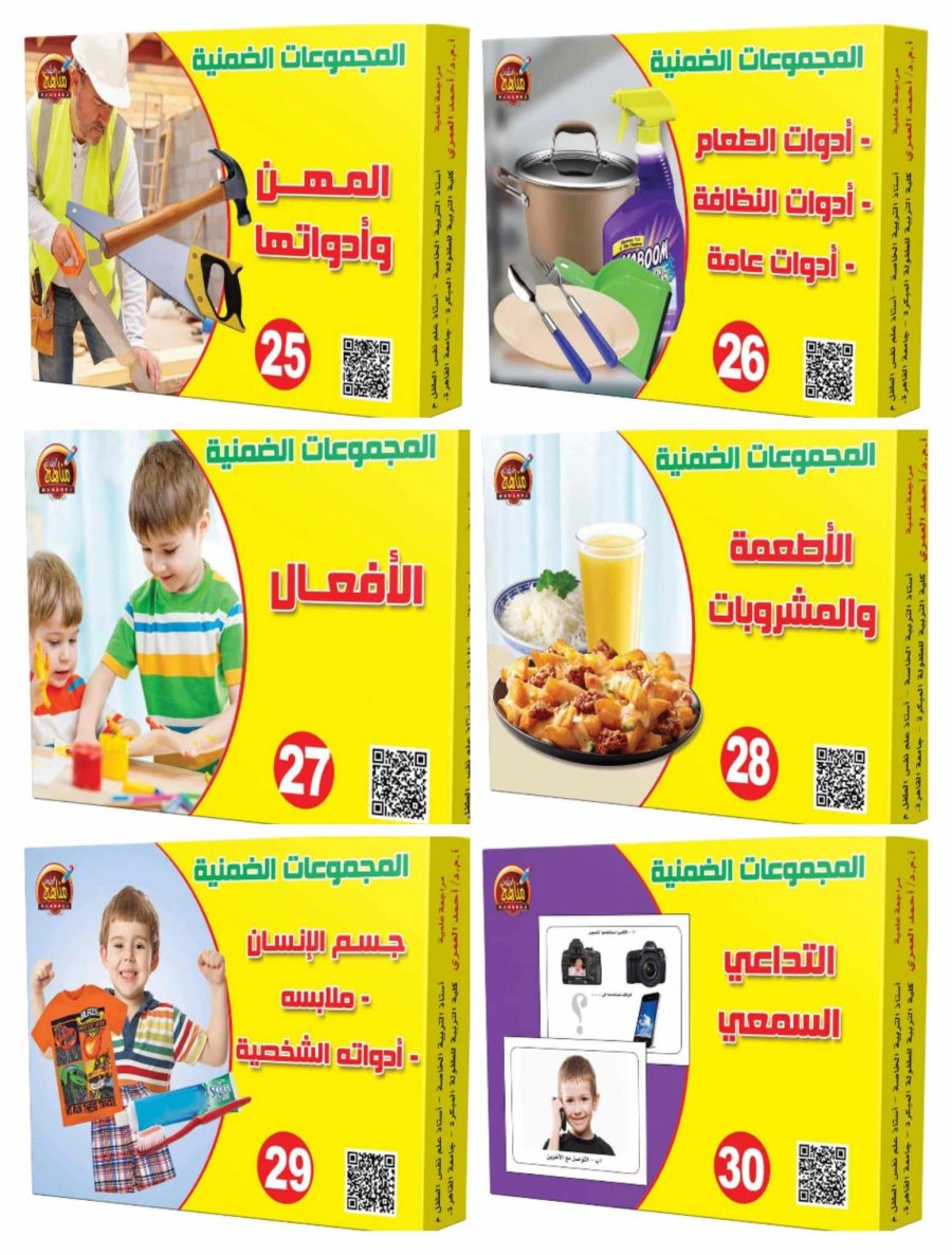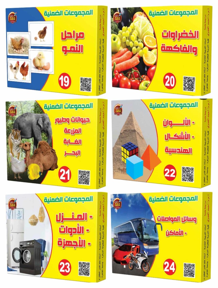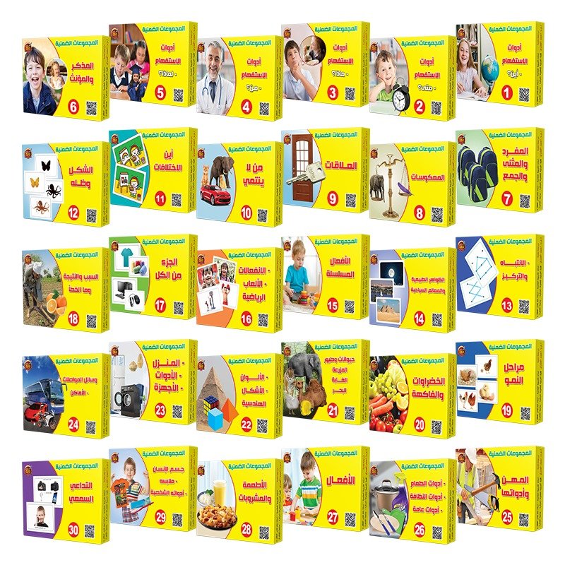 تشمل 30 مجموعة مختلفة تغطي مفاهيم وأصناف متعددة مثل الحيوانات، الطعام، الألوان، الأدوات، والملابس وغيرها!