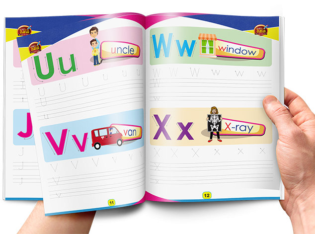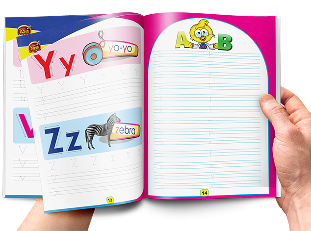 يتدرب فيه الطفل على كتابة الحروف الإنجليزية مرات عديدة مع إمكانية مسحها والكتابة مرة أخرى .