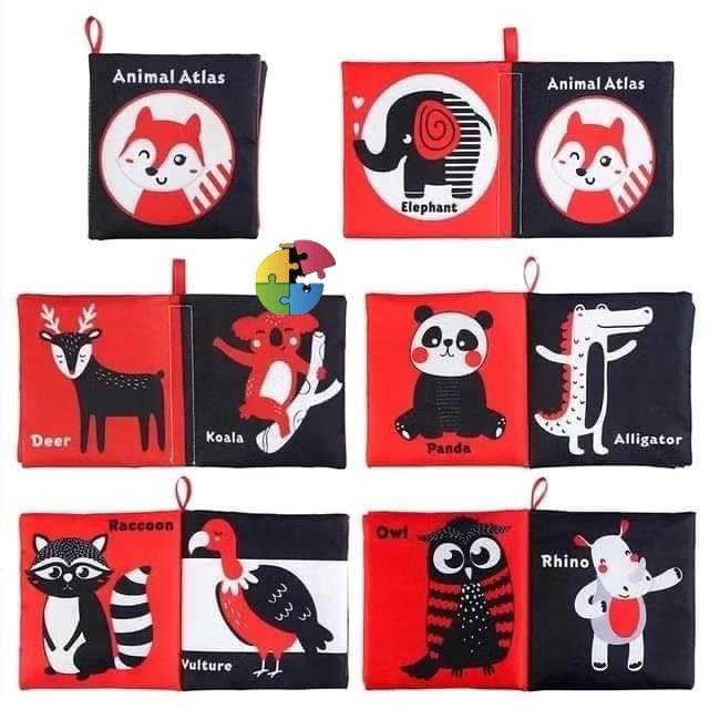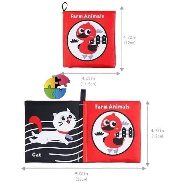 كتاب قماش ناعم وآمن، مصمّم خصيصًا للأطفال الصغار ليتعرفوا على الحيوانات والأشكال والألوان بطريقة ممتعة وآمنة 💕