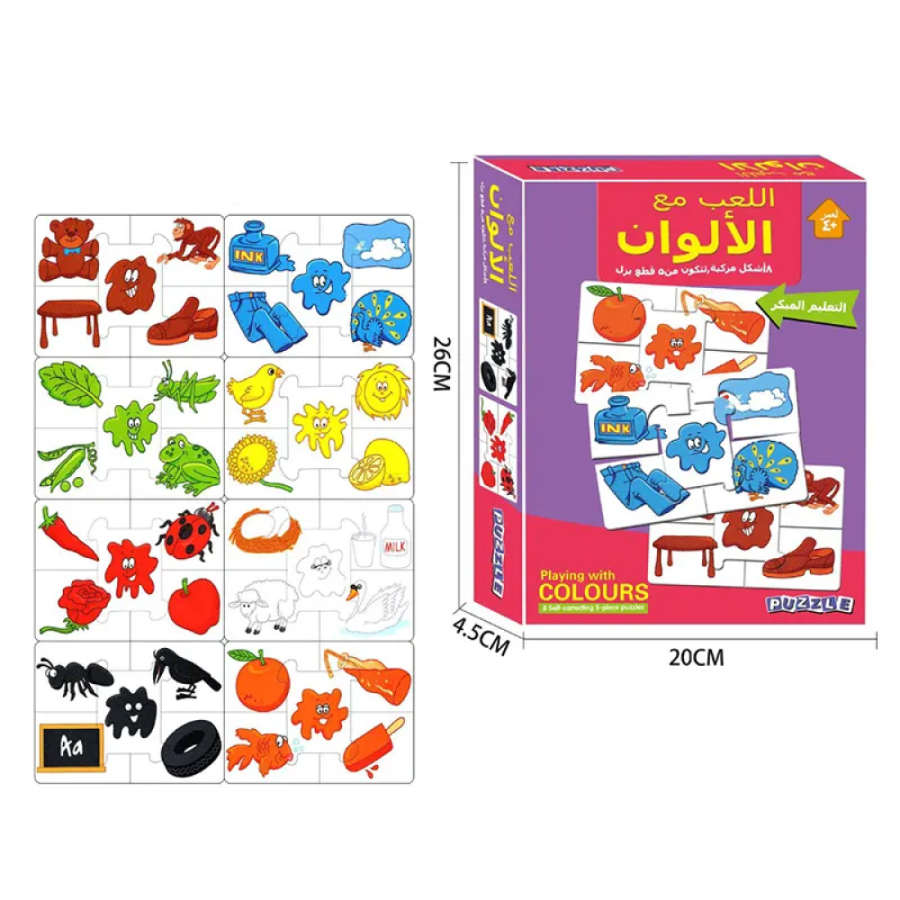 تتكوّن من 8 أشكال مركبة، كل شكل من 5 قطع بزل، لتعليم الأطفال التعرف على الألوان والأشكال بطريقة مسلية وشيّقة! 🎨✨