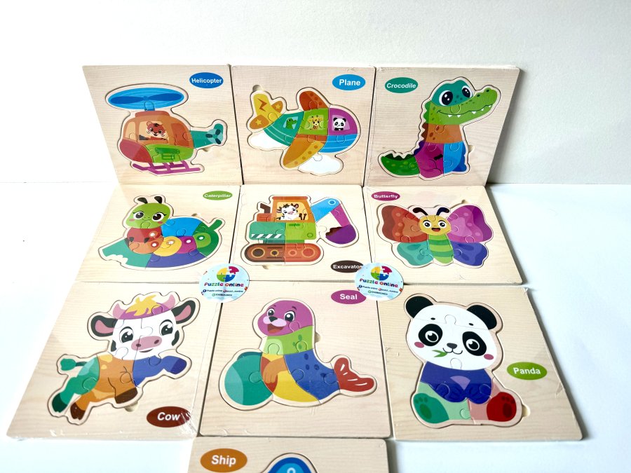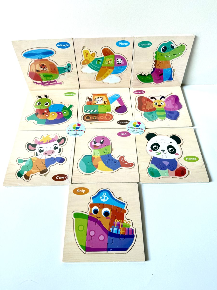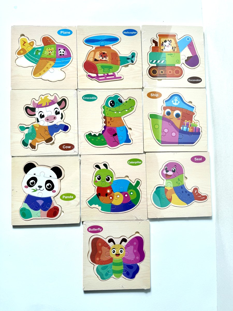 بزل خشبي ملوّن بتصاميم لطيفة (حيوانات ✨ وسائل نقل 🚁🛳️) يساعد الأطفال على:
