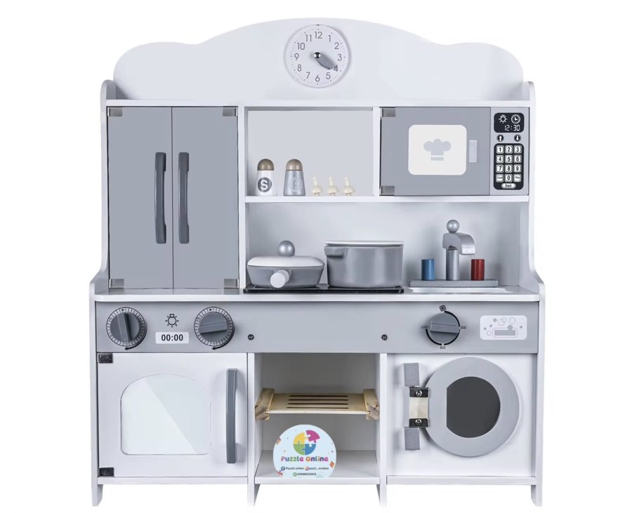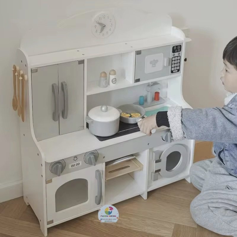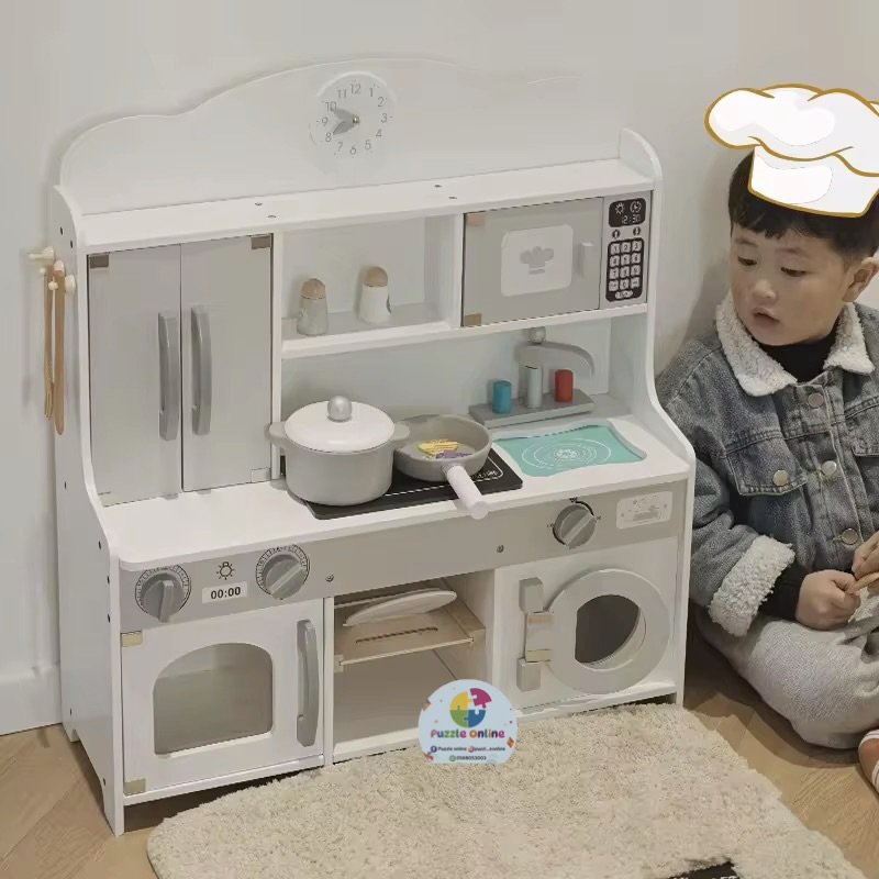 مطبخ خشبي أنيق ومتكامل، مصمم ليمنح طفلك تجربة لعب واقعية وممتعة 👩🍳👨🍳