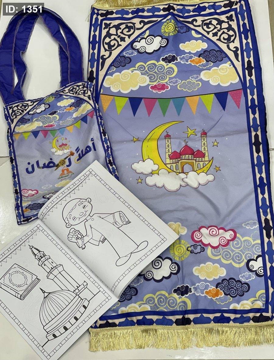 هذه مجموعة سجادة صلاة للأطفال يمكن تلوينها يدويًا. تتضمن سجادة صلاة ناعمة بتصميم مزخرف برسومات للأطفال. تأتي مع حقيبة قماشية مطابقة لحفظ السجادة. يشمل المنتج أيضًا كتاب تلوين لمزيد من الأنشطة التعليمية. مصممة لتشجيع الأطفال على تعلم الصلاة بطريقة ممتعة وتفاعلية