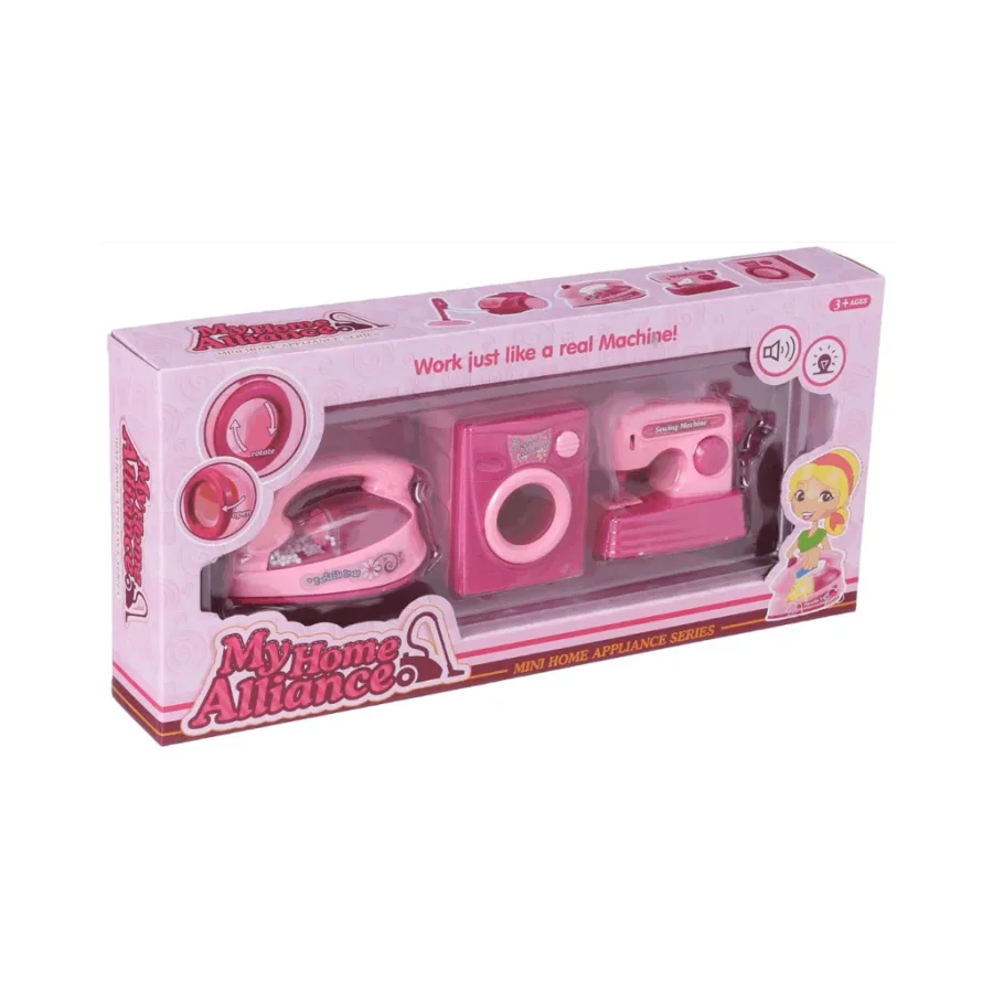 يحتوي الطقم على أجهزة منزلية بتصميم جميل وألوان جذابة، مع مؤثرات صوتية وحركة بتزيد المتعة والحماس 🎶🔄