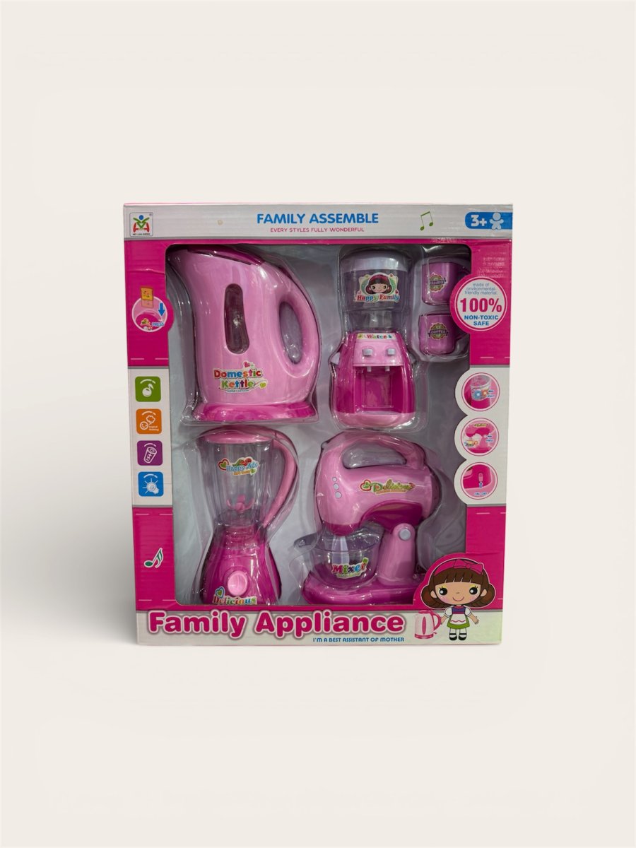 مجموعة ألعاب تحاكي الأجهزة الكهربائية المنزلية مثل الخلاط، ماكينة تسخين الماء، وماكينة الخياطة، بتصميم واقعي وألوان جذابة تمنح الطفل تجربة لعب ممتعة وآمنة.