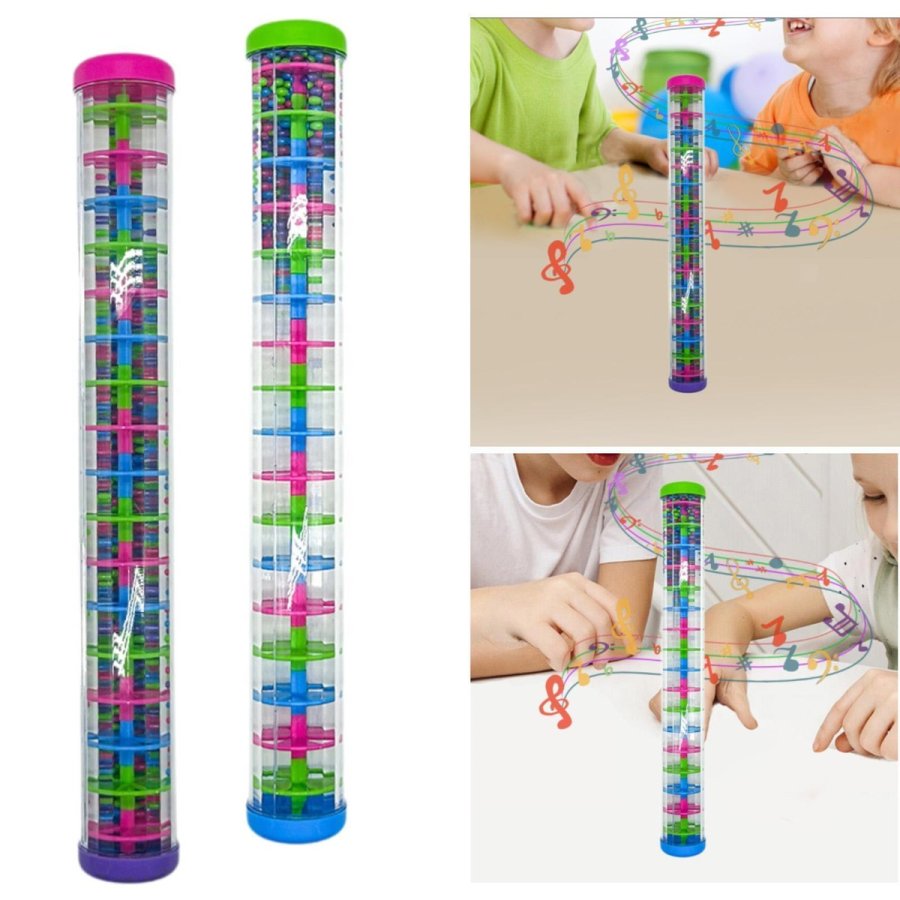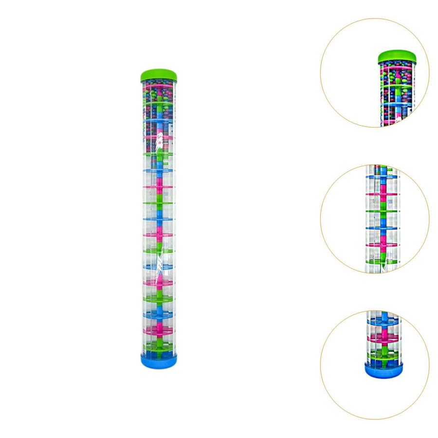 خرخيشة بتصميم أسطواني شفاف وألوان زاهية، تحتوي على كرات ملوّنة متحرّكة تصدر صوتًا لطيفًا يساعد على تنشيط حواس الطفل وجذب انتباهه.