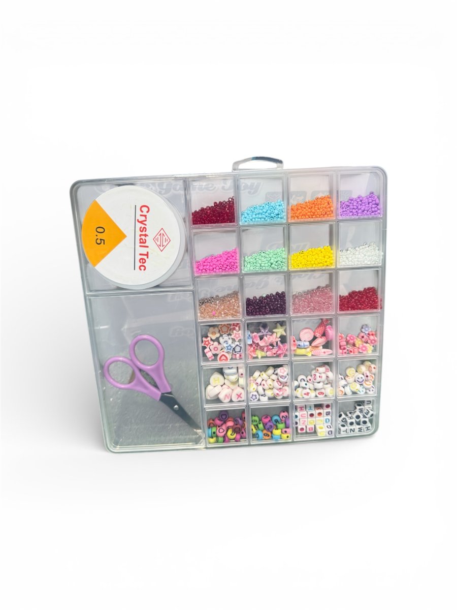 مجموعة متكاملة من الخرز الصغير الملوّن مع أشكال متنوعة وحروف وأرقام، مثالية لصنع الأساور، القلائد، والإكسسوارات اليدوية بأسلوب ممتع ومبتكر.