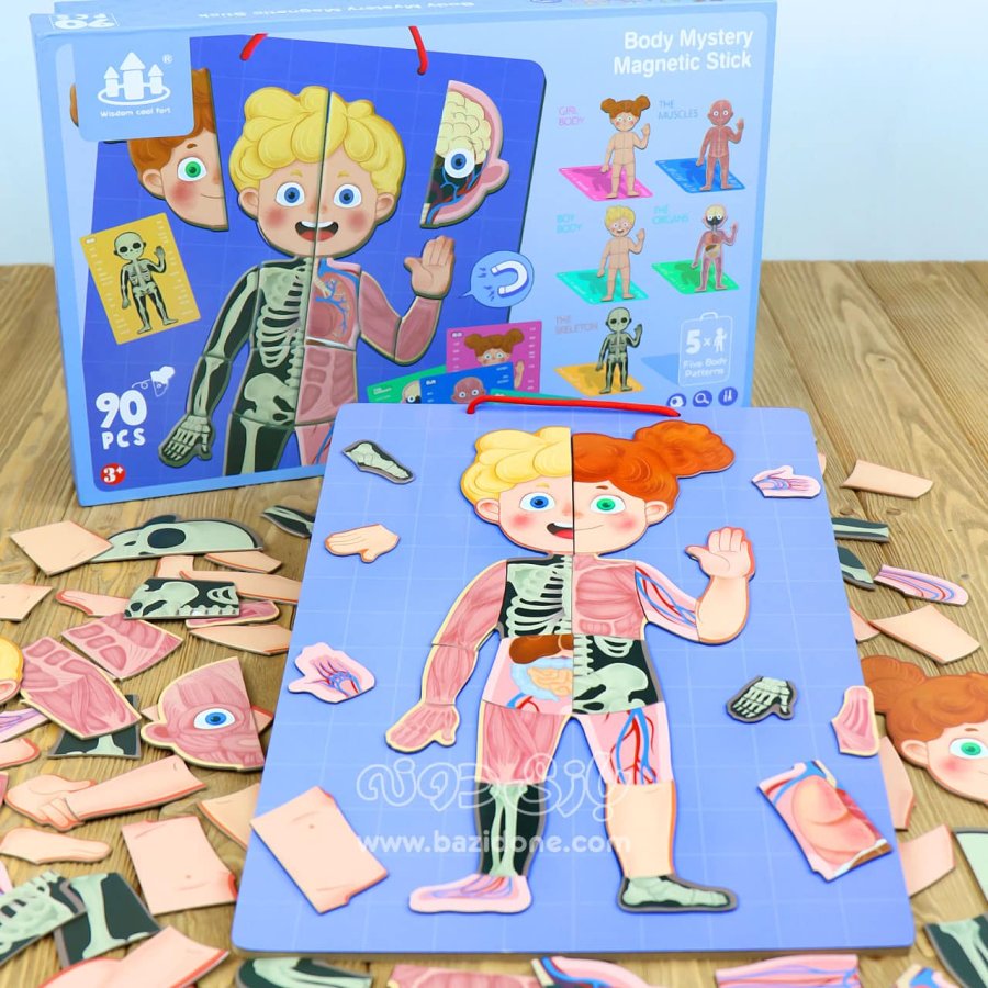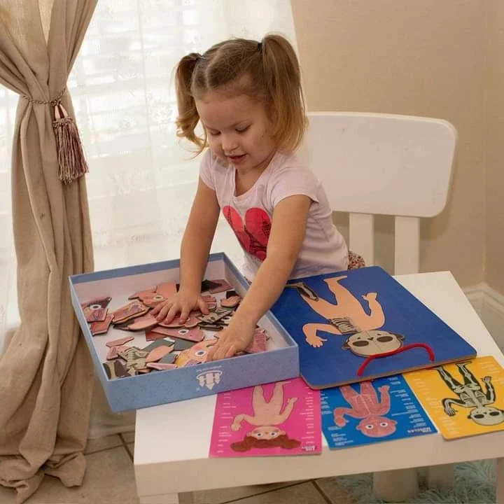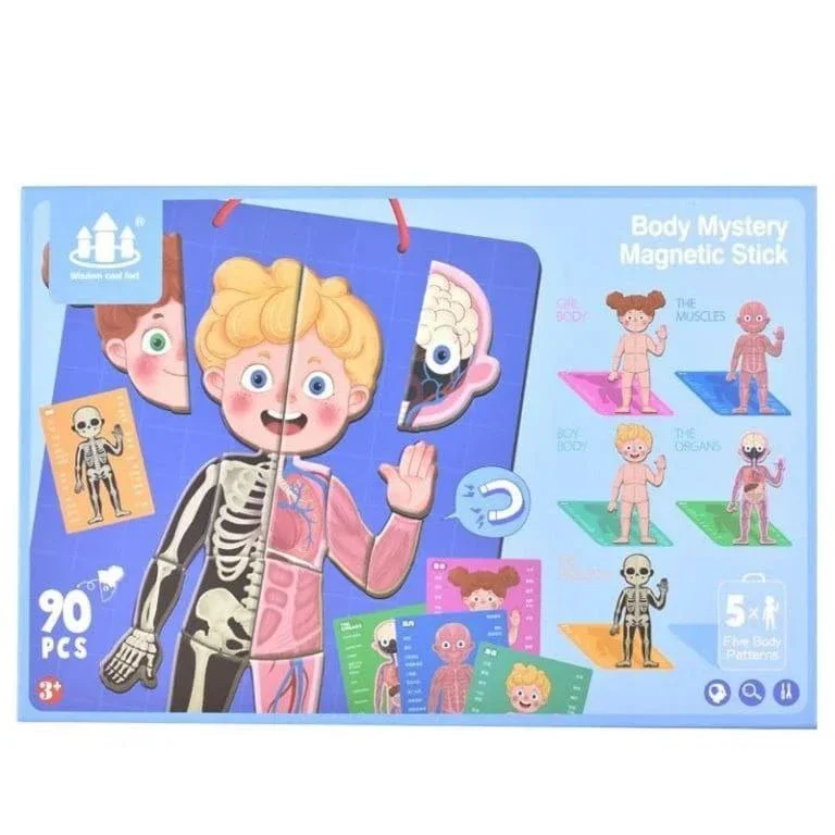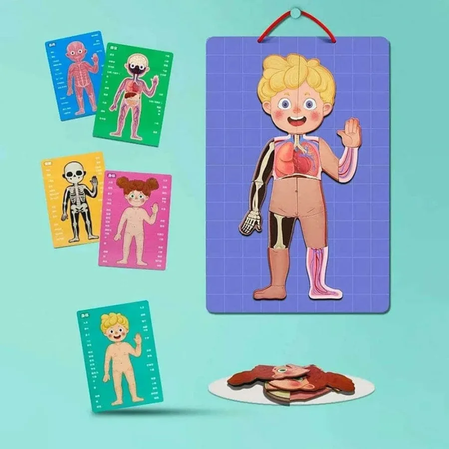 لعبة تعليمية ممتعة تساعد الطفل على التعرّف على جسم الإنسان وأجزائه الداخلية بطريقة تفاعلية وشيّقة. تحتوي على قطع مغناطيسية تمثّل الهيكل العظمي، العضلات، الأعضاء، والجلد، ليقوم الطفل بتركيبها خطوة بخطوة وفهم تركيب الجسم بسهولة.