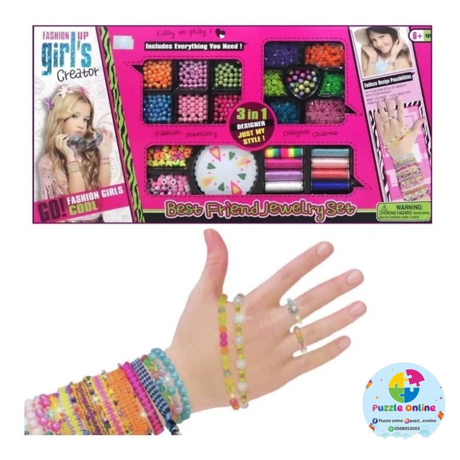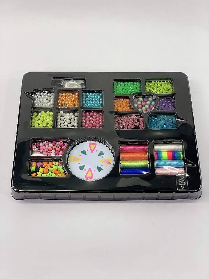 لعبة إبداعية ممتعة تتيح للأطفال تصميم وصناعة أساور وقلادات جميلة بأسلوبهم الخاص. يحتوي الطقم على تشكيلة واسعة من الخرز الملوّن، الخيوط، والإكسسوارات التي يمكن تنسيقها بطرق لا نهائية لصنع مجوهرات فريدة.