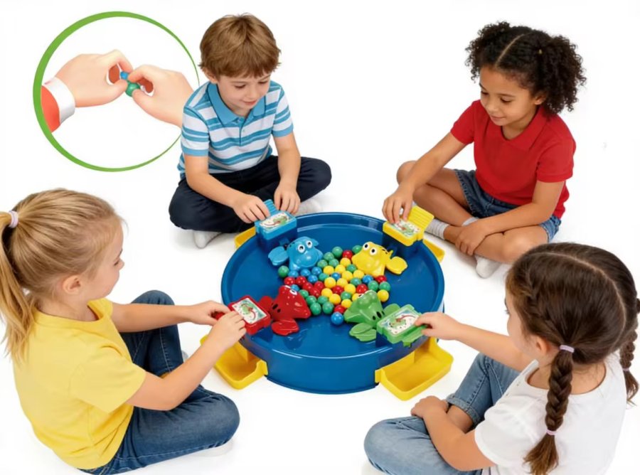 كل لاعب يحاول أن يكون الأسرع ليجمع أكبر عدد من الكرات داخل ضفدعه!